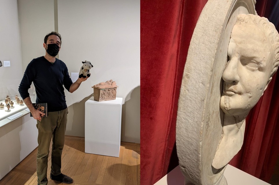 Jolies pièces et superbe visite réalisée par Elie, responsable des collections archéologiques et passionné mais également directeur adjoint. Il tombe sous le charme de la belle Marguerite. Ici nous sont expliquées les méthodes de restauration : au XIXème, pour refaire une statue de marbre comme celle de cet enfant aux fruits, des pièces métalliques sont implantées dans les restes de marbre puis du plâtre est façonné pour redonner l’aspect original… Cela ne tient pas dans le temps. Les techniques actuelles prennent bien plus soin de l’original quitte même à faire, volontairement, apparaître les morceaux refaits comme sur ce carreau de terre cuite.[…]
