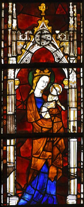 La cathédrale Notre-Dame d’Évreux est un livre d’architecture & elle brille aussi par ses verrières uniques. Ici, le jaune d’argent trouve ses plus belles expressions dans plusieurs baies du chœur, réalisées entre 1325 et 1330. Un autre joyau, plus tardif, se cache dans la chapelle Saint-Louis : un chef-d’œuvre où l’on peut admirer la finesse et la maîtrise du jaune d’argent, réputé pour être l’une des plus belles verrières de la cathédrale : le manteau de la Vierge à l’enfant.