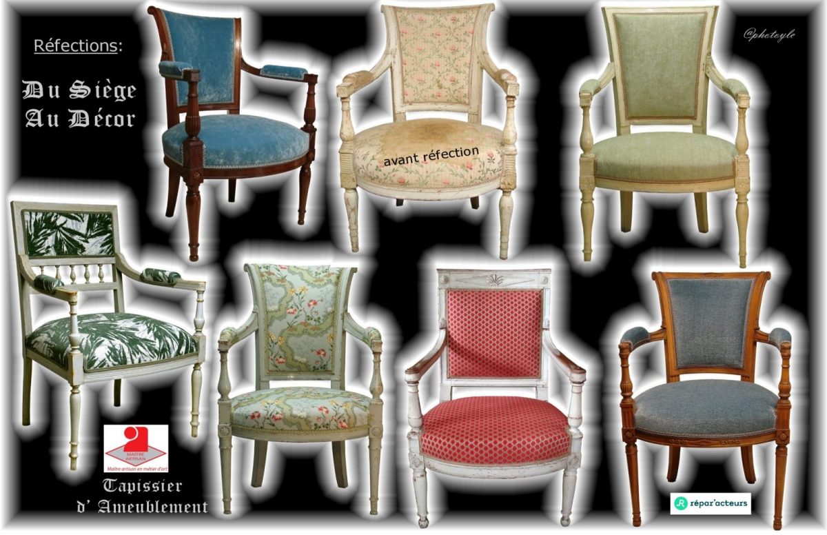 Réfection, confection sur mesure, choix d’étoffes, tissus et passementeries soigneusement sélectionnés : chaque pièce retrouve son âme, sa tenue, son allure.