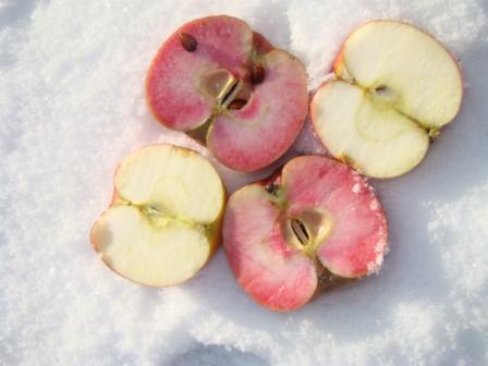Une pomme à la chair rouge ! Du jamais vu. Stéphane Van Tornhout et son épouse Martine, arboriculteurs à Gauciel, ont importé cette incroyable pomme sanguine du Canada : une pomme à la peau et à la chair rouge. Son goût, savoureux et acidulé, est transformé par Stéphane en jus et apéritif normand et en exclusivité artisanale du Cidre Rosé et en délicieux produits dérivés faits maison et vendus dans la boutique du Clos Cerisey.