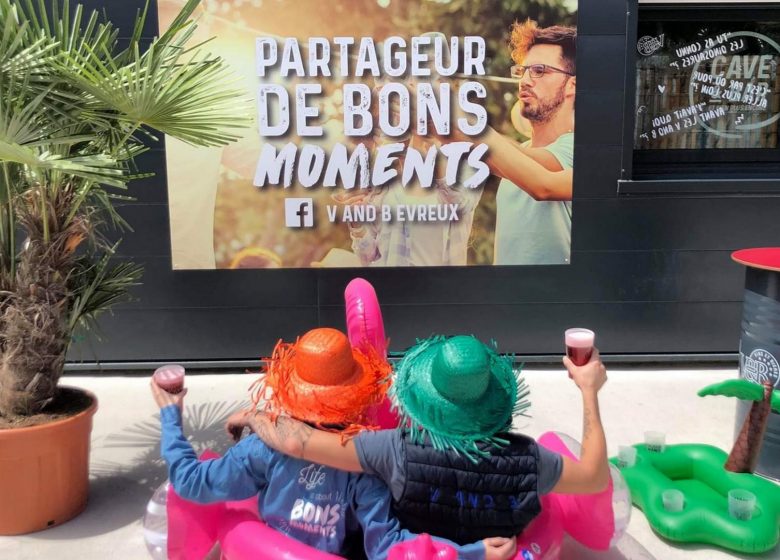 Envie de faire plaisir ou de passer un bon moment ? Notre équipe t'accueille et te conseille dans ton choix de vin, bière ou spiritueux à Vieil Evreux. À emporter du côté cave, à déguster du côté bar ! V and B Evreux est le lieu de rendez-vous de la jeunesse, des bobos, des supporters, des chefs d’entreprise, des copines, et bien plus encore… Que ce soit après le travail ou lors de soirées spéciales (retransmissions sportives, concerts, Oktoberfest, St Patrick...), rejoins la communauté des VandBistes ! Impliqué dans la vie locale et associative, V and B t'accompagne aussi dans l’organisation d’évènements privés, sportifs ou associatifs, par la location de tireuse à bière...