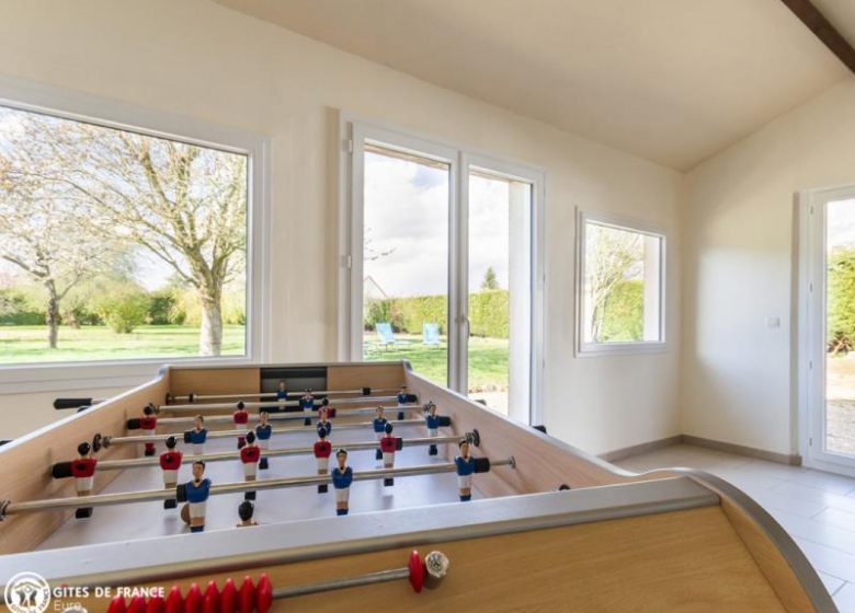 La maison Apollon est parfaite pour accueillir toute la tribu pour un week-end ou une semaine. Imaginée comme une maison d'amis, une maison de vacances, un lieu unique où l'on aime s'attarder à se reposer, partager des moments simples et se ressourcer. Pour occuper les petits et les plus grands, vous avez accès à un babyfoot ainsi qu'à un coin lecture. Côté jardin, encore beaucoup d'espace pour se dégourdir les jambes, de nombreux jeux comme le panier de basket, et cette belle terrasse où il fait bon s'installer pour les repas au grand air. Tout est rassemblé pour un séjour inoubliable.