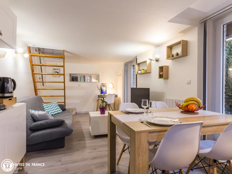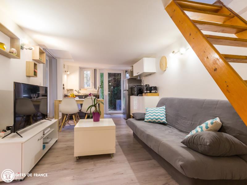 Aux portes d'Évreux dans un village nommé le Vieil Evreux, Anne-Sophie et Goulven ont fait de cette petite maison un endroit convivial et chaleureux. Le gîte Cupidon est moderne et cosy ; on est ici comme chez soi. A la belle saison, le jardin se prêt au barbecue. Tout à côté (8 minutes à pied), le site archéologique de Gisacum... qui étonne encore aujourd'hui par sa démesure ! La propriété, entièrement close, se compose de 4 gîtes bien distincts autour d'une cour commune. Abri vélo/motos.