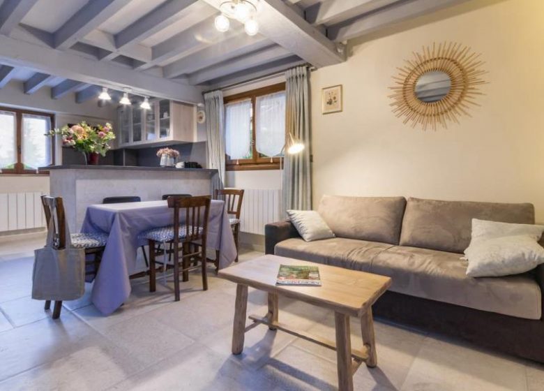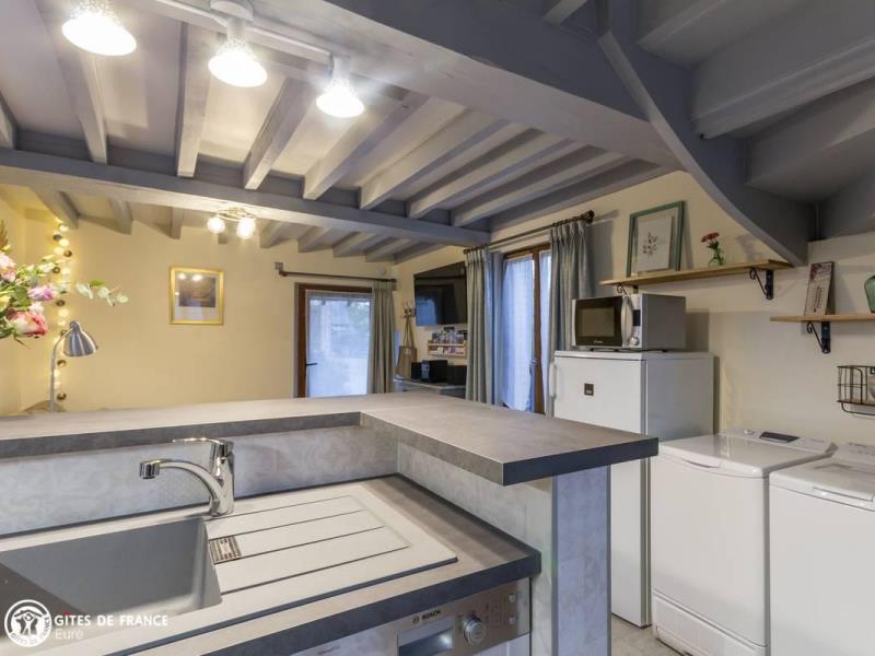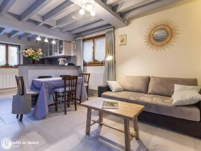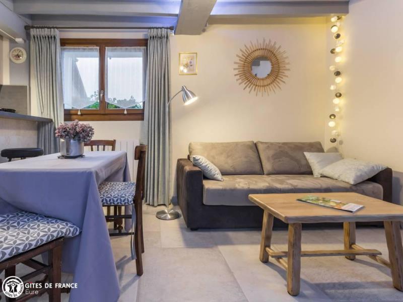 Bienvenue à la Maisonnette, adorable gîte des "3 nids fleuris". Cette petite maison traditionnelle, en briques et pans de bois, vous offre un vrai confort mais aussi chaleur et bien être grâce à une déco réussie et apaisante. Elle est complètement indépendante et profite d'un jardin privé très sympa qui ouvre sur la campagne, avec tout le mobilier de détente pour en profiter. Marianne, Jérôme et les enfants vous réservent le meilleur accueil et vous guideront dans la découverte de cette très jolie région de la vallée de l'Eure, également à deux pas d'Evreux. Les fans de jardin seront ravis d'une visite de celui de Marianne, intarissable sur sa roseraie et autres hydrangéas, superbes. Entrée sur le joli séjour, son salon cosy, son coin repas et sa cuisine très bien équipée ; vue sur le jardin et plus loin la campagne. A l'étage, la chambre mansardée, élégante et douillette à souhait, avec un grand lit en 180x200 séparable, et la salle d'eau, petite mais tout est là et très bien conçu, avec wc. Le jardin est privatif, non clos pour l'instant (environ 300 m²). Beaucoup de belles découvertes à faire alentour, dont la vallée d'Eure, Evreux et ses bords de l'Iton, et côté loisirs canoë ou accrobranches tout près.