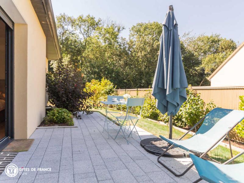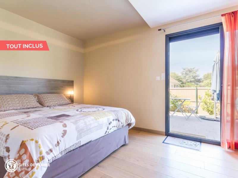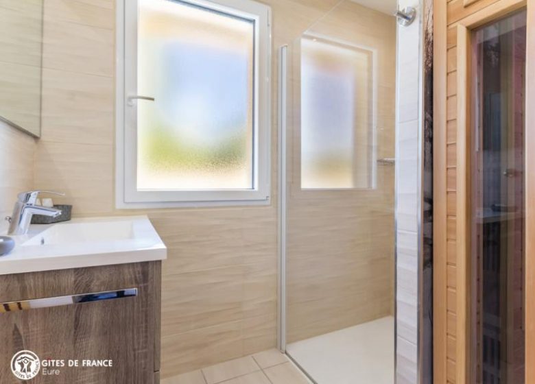 Une adresse vraiment sympa aux portes d'Evreux, au bord d'un petit village et en lisière de forêt. Cette jolie maison contemporaine abrite un studio dans un esprit moderne, totalement indépendant grâce à son accès extérieur, avec un coin jardin et terrasse rien que pour vous avec du mobilier de jardin pour un petit café au soleil et des chaises longues pour la détente. Autre plus : un sauna privatif ! L'environnement est champêtre, du jardin avec son potager, son jeune verger et ses poules, aux alentours, avec un accès direct à la forêt ou à la campagne : avec un peu de chance, vous verrez juste au fond du jardin des faisans ou chevreuils ! Entre Evreux et la vallée de l'Eure, vous aurez l'embarras du choix côté activités, loisirs et visites : Anne Sophie et Goulven, sur place, vous diront tout. Le studio se situe au RDC, avec un accès extérieur, en toute indépendance. La pièce offre un coin cuisine, un coin repas et un couchage très confortable : lit double en 160x200. Salle d'eau avec wc privatifs ainsi qu'un sauna privatif. Grand jardin de 2500 m² dont une partie est privative, avec terrasse ; les propriétaires habitent l'autre partie de la maison. Stationnement sur la propriété.