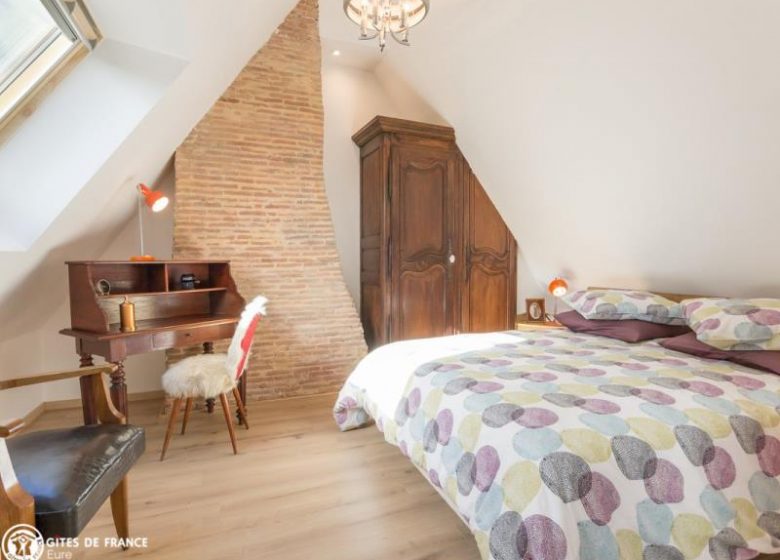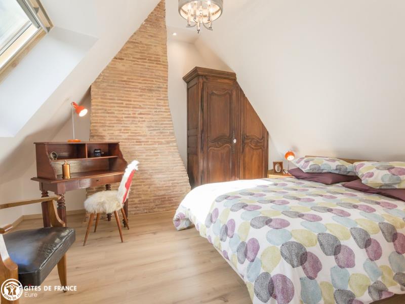 Une jolie dépendance à pans de bois et volets rouges abrite aujourd'hui un gîte accueillant et plein de charme, en bordure du village et des champs. Sur une partie indépendante de sa propriété, Laurent a aménagé cette jolie maison de vacances : très confortable, chaleureuse par ses matériaux traditionnels (tomettes, poutres, colombages...). Vallée de l'Iton et forêt à deux pas. Randonnées sur place. et Surtout les chèvres de la Bikette Caugéenne à découvrir dans le village !