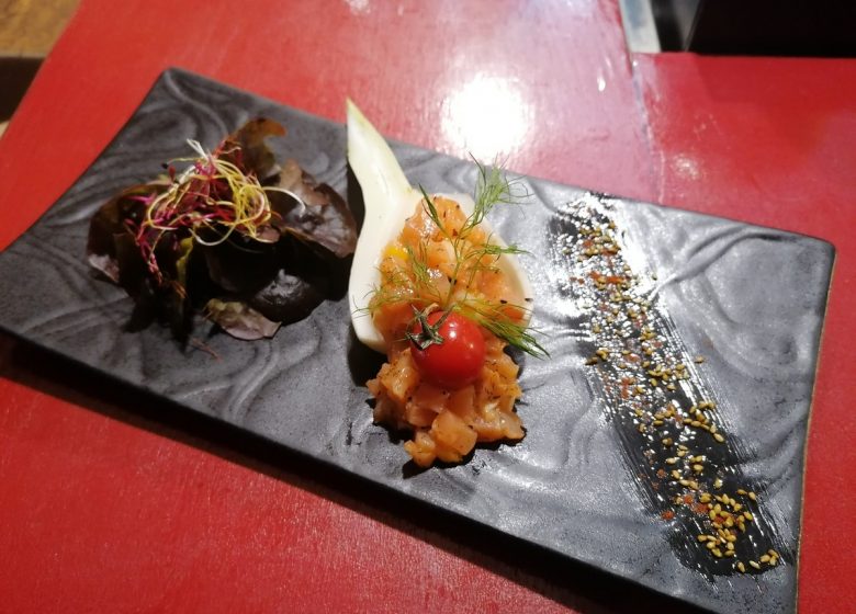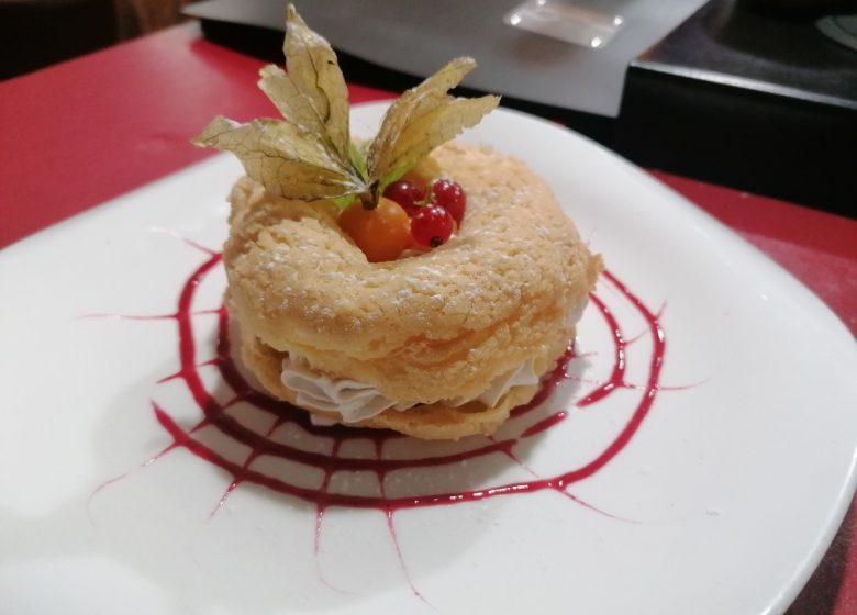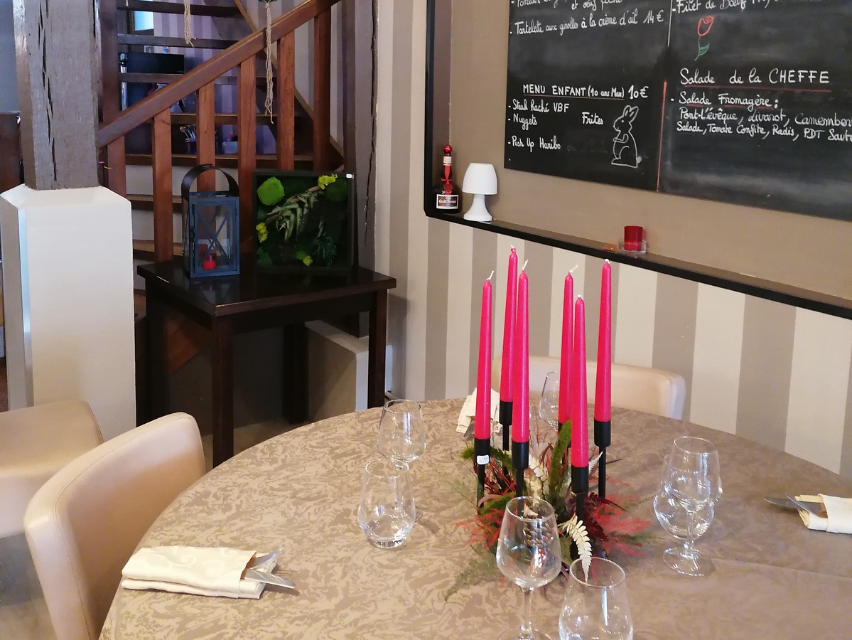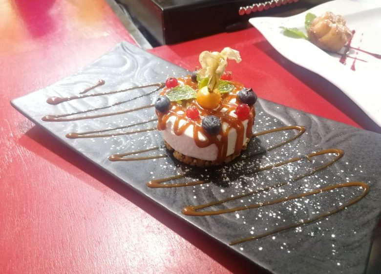 Le fait maison n’est pas un label mais un état d’esprit. Nous sommes des adeptes du slow food, à commencer par Angélique, en cuisine. Nous cherchons toujours des plats qui collent à la saison. La salle est assez petite, mais cosy et chaleureuse. L’été’ une terrasse, cachée à l’arrière des bâtiments dans un écrin de calme avec son jardin de 700 m2 verdoyant.